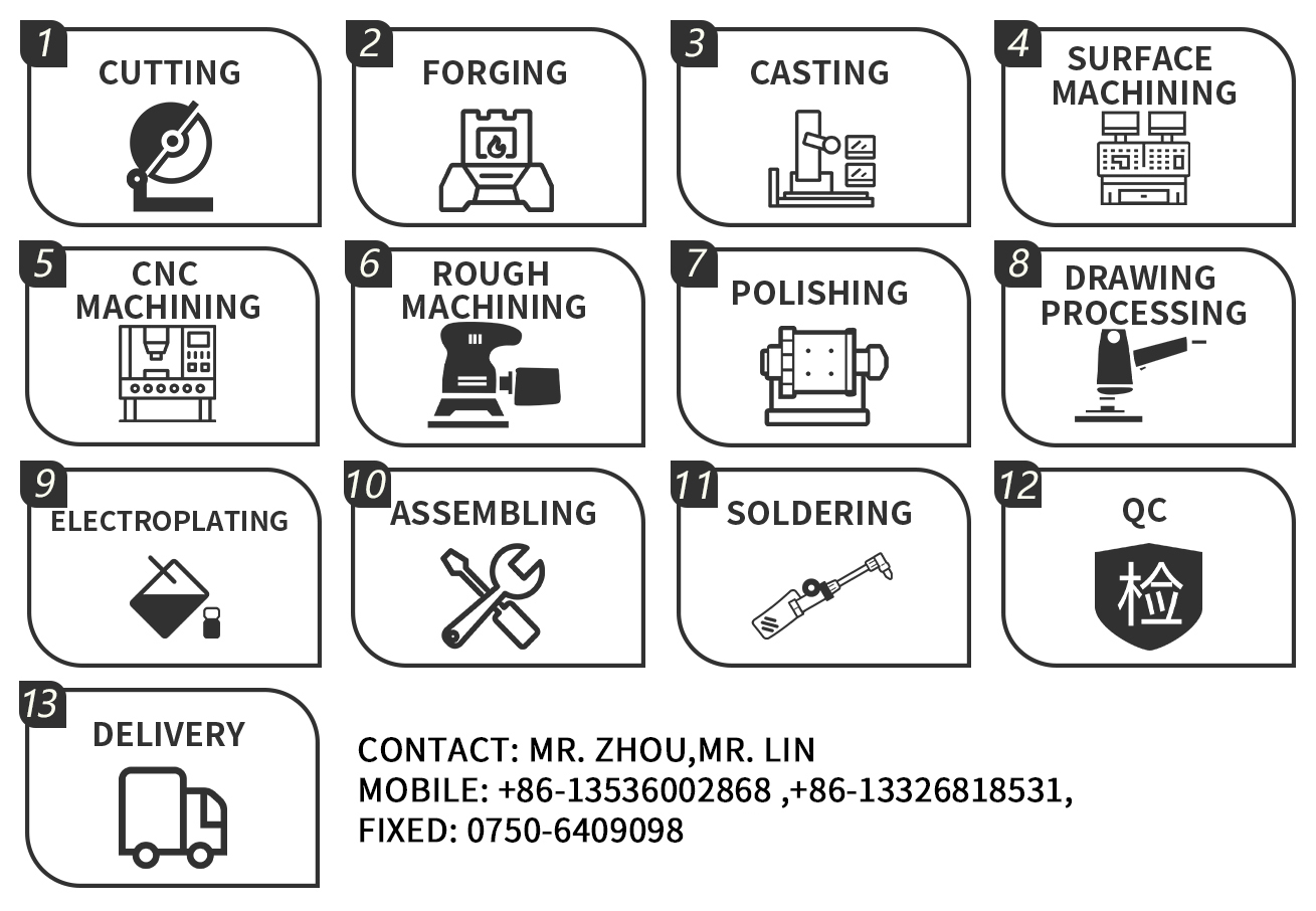 It is fully equipped with the processing and process control capabilities of copper forging, machining, stamping, surface polishing, electroplating, surface drawing and PVD vacuum coating. We communicate and confirm customer needs based on actual conditions.